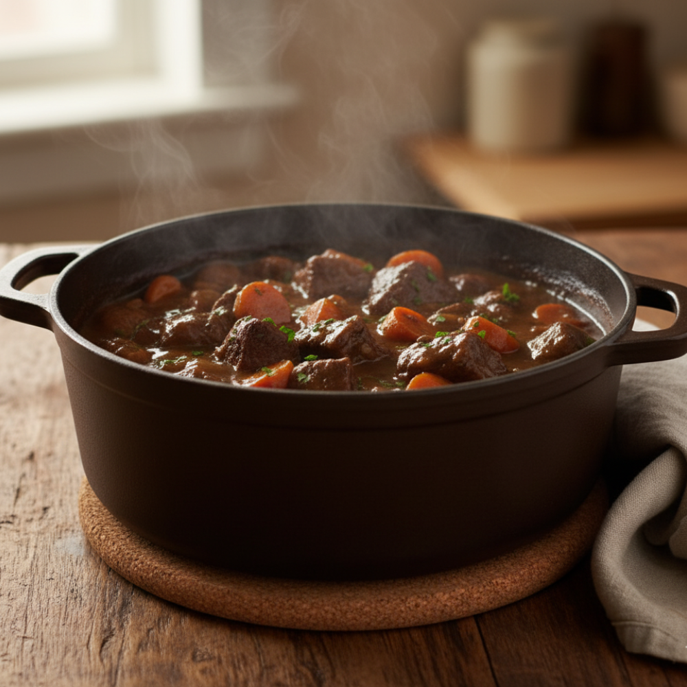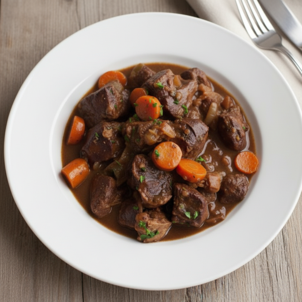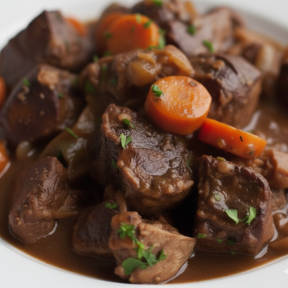 Tender beef cheeks slow-cooked in a rich red wine sauce with carrots, onions, and herbs. A traditional French classic, hearty, flavorful, and melt-in-your-mouth comfort food.