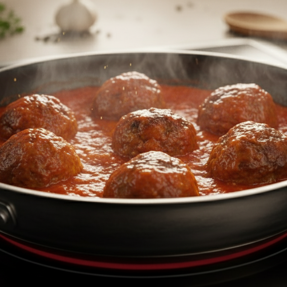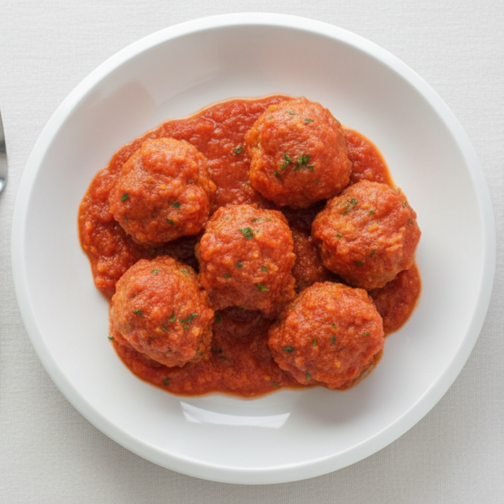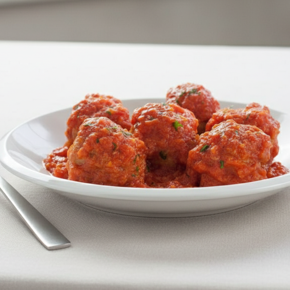 Enjoy our Napolitan Meatballs, tender beef and pork meatballs simmered in a rich tomato sauce with Mediterranean herbs. A hearty, comforting dish full of flavor, perfect for a delicious homemade-style meal.